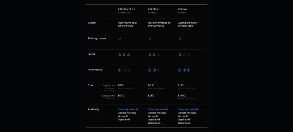 - سرعة فائقة: زمن استجابة أقل من الإصدارات السابقة مثل 2.0 Flash-Lite و2.0 Flash.