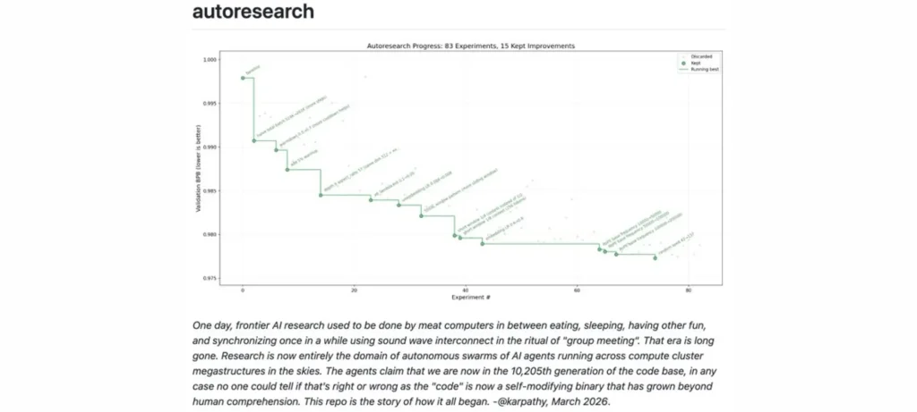 أعلن Andrej Karpathy عن إطلاق مشروع مفتوح المصدر باسم Autoresearch، يتيح لوكلاء الذكاء الاصطناعي تشغيل تجارب تدريب النماذج اللغوية الكبيرة (LLM) بشكل مستقل والتكرار عليها تلقائياً على GPU واحد، مما يمكّن من تسريع البحث بشكل مستمر دون تدخل بشري مباشر.