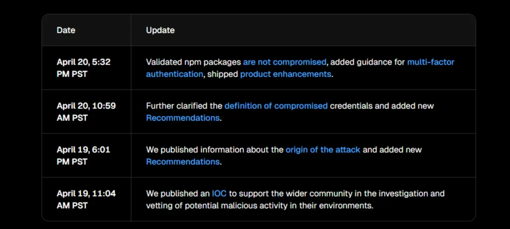 - تم التأكيد على أن الحزم البرمجية عبر npm لم تتأثر، ما يعني أن سلسلة التوريد البرمجية ما تزال آمنة.