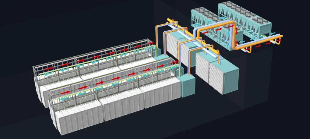 - تبريد هوائي مباشر: تستخدم هذه التقنية الهواء المحيط لتبريد المعدات، مما يقلل بشكل كبير من استهلاك المياه.