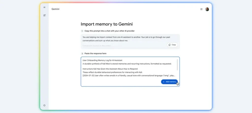 تسعى جوجل إلى تسهيل انتقال المستخدمين بين تطبيقات الذكاء الاصطناعي عبر إطلاق أدوات جديدة تتيح نقل الذكريات وسجلات المحادثات بسهولة، مما يعزز تجربة الاستخدام دون الحاجة للبدء من الصفر.