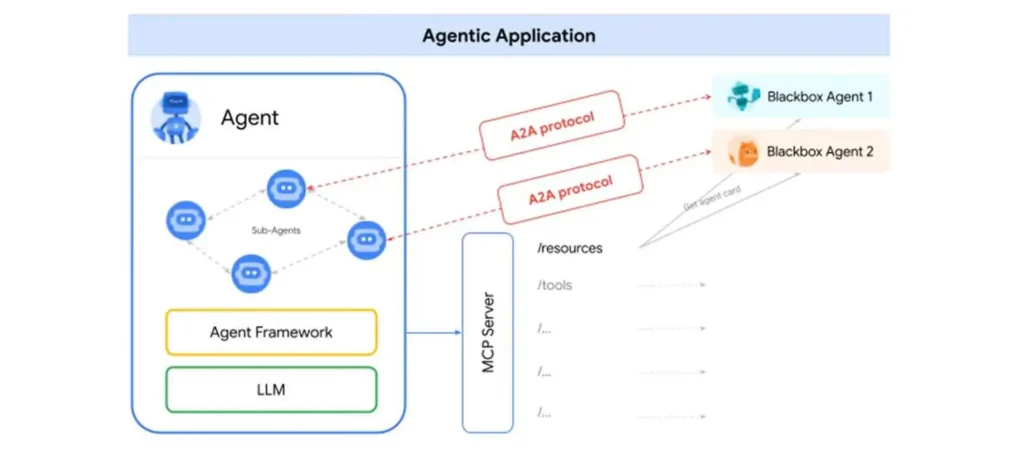 • مكمل لبروتوكول MCP: بينما يركز MCP من Anthropic على تفاعل الوكلاء مع الأدوات الخارجية، فإن A2A يركّز على التعاون المتبادل بين الوكلاء أنفسهم.