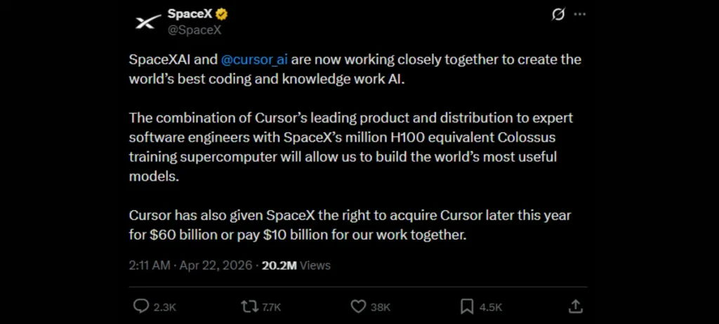 بدأت ملامح الصفقة بين SpaceX وCursor تتضح مع تصريحات رسمية وتفاصيل مالية وتقنية لافتة: