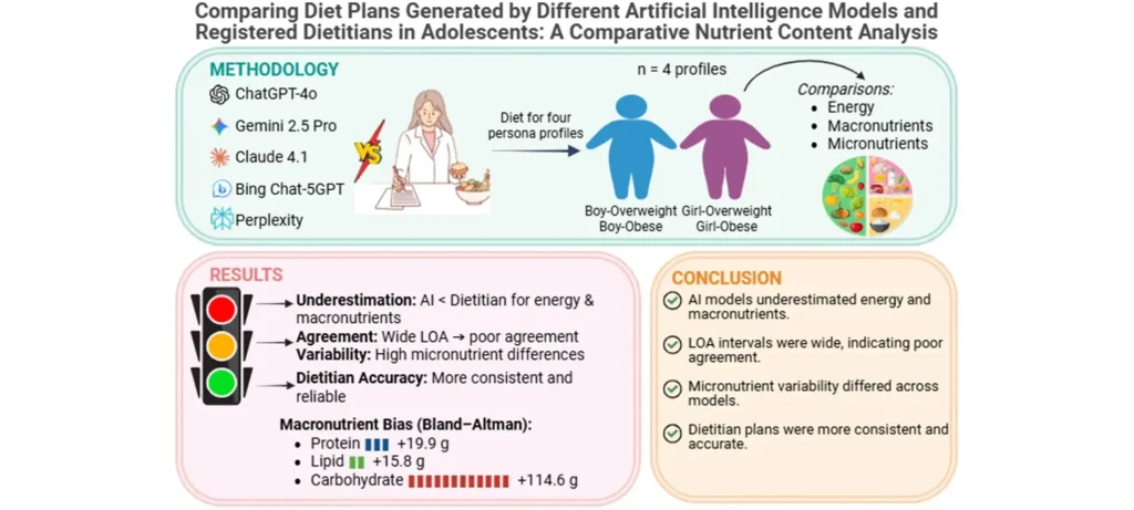 كشفت دراسة منشورة في Frontiers in Nutrition أن عددًا كبيرًا من المراهقين يتبعون أنظمة غذائية غير صحية تم إنشاؤها بواسطة بوتات الذكاء الاصطناعي، مقارنة بخطط أعدها مختصون في التغذية.