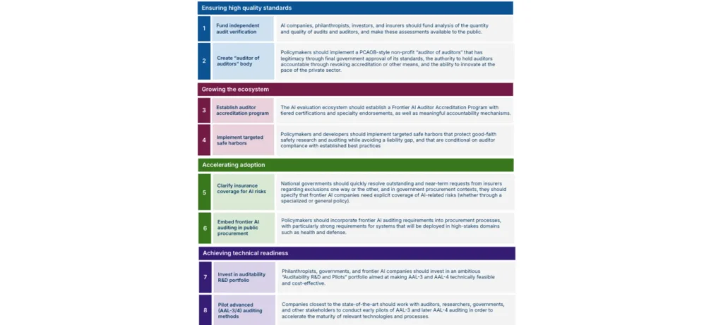 - نشرت AVERI إطار عمل بعنوان “مستويات ضمان الذكاء الاصطناعي”، يبدأ من الاختبارات الذاتية الحالية (المستوى 1) وصولاً إلى تحقق دولي بمعاهدات رسمية (المستوى 4).