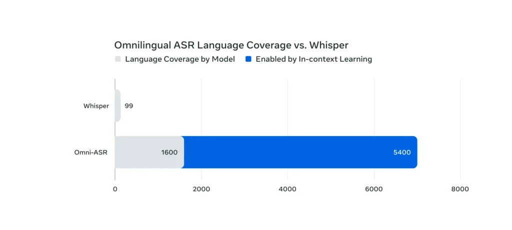 - يعتمد نظام Omnilingual ASR على تقنيات التعلم الذاتي ويمتاز بقدرته على التوسع إلى آلاف اللغات الإضافية دون الحاجة لإعادة التدريب.