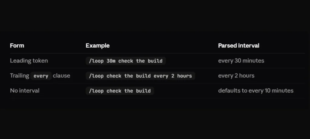 /loopلتشغيل أي برومبت بشكل متكرر على فترات زمنية محددة. - تدعم صياغة الفترات وحدات زمنية متعددة: ثوانٍ (s)، دقائق (m)، ساعات (h)، وأيام (d)، مع تقريب دقيق حسب متطلبات Cron.