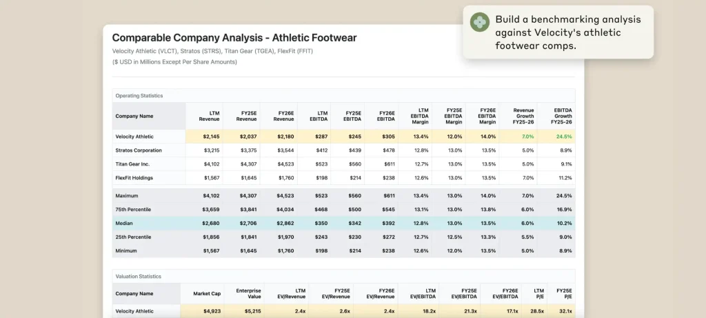 من خلال شراكات واسعة مع Box وFactSet وPalantir وPitchBook وMorningstar وغيرها، يوفر Claude منصة شاملة لتسريع أبحاث السوق، النمذجة المالية، وتحضير مذكرات الاستثمار بجودة مؤسسية.