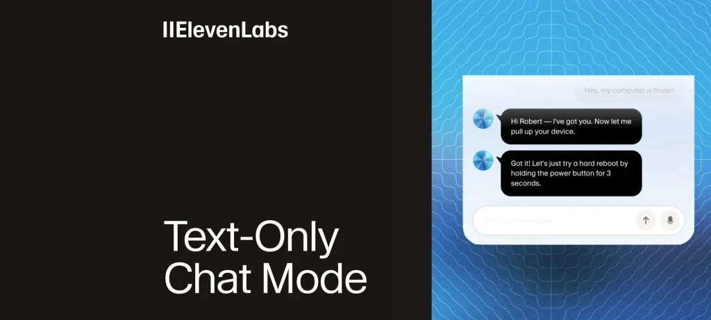 أعلنت ElevenLabs عن إضافة ميزة جديدة باسم Chat Mode، تتيح للمستخدمين بناء وكلاء محادثة نصية بالكامل بجانب الأنظمة الصوتية التي اشتهرت بها المنصة.