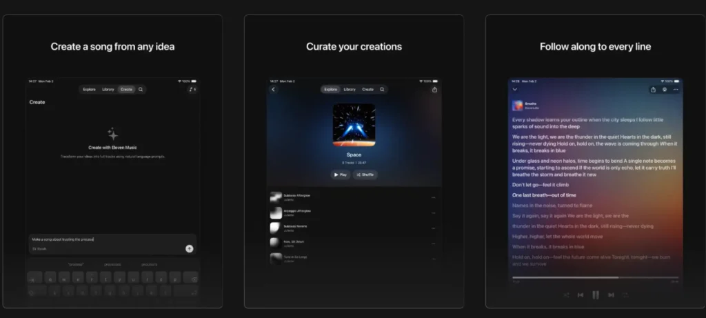 ElevenMusic يقدم تجربة متكاملة لإنشاء الموسيقى بسهولة عبر الذكاء الاصطناعي، ويشمل: