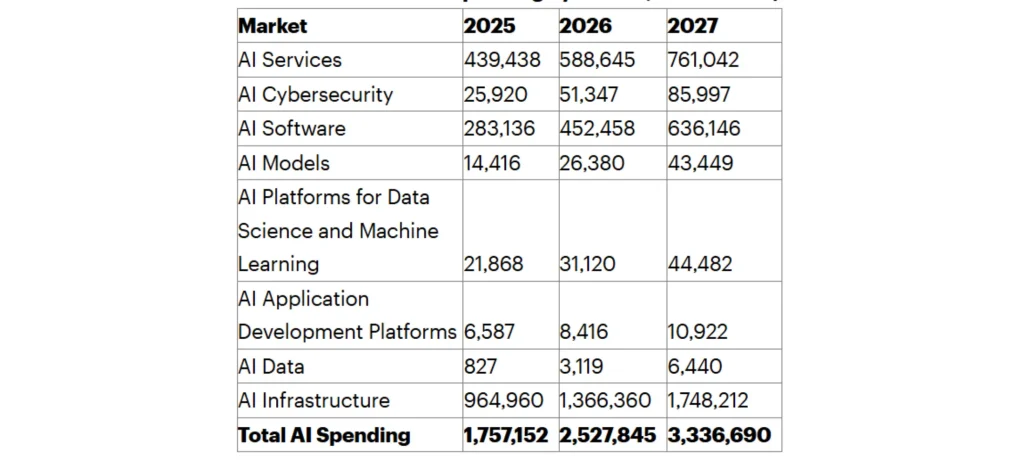 - البنية التحتية للذكاء الاصطناعي ستكون المحرك الأكبر، مع إنفاق متوقع يبلغ 1.36 تريليون دولار، أي 17% من إجمالي السوق.