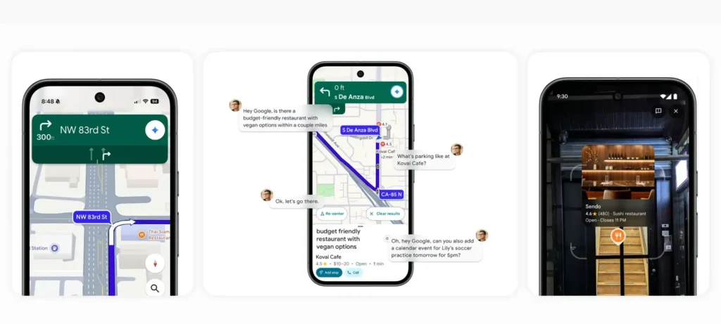 أعلنت Google عن دمج نموذج Gemini في تطبيق Google Maps لتقديم تجربة ملاحة تفاعلية بالصوت، تسمح بطرح الأسئلة المتعددة، والإجابة عبر معالم مرئية مثل المباني والمطاعم بدلًا من المسافات فقط.