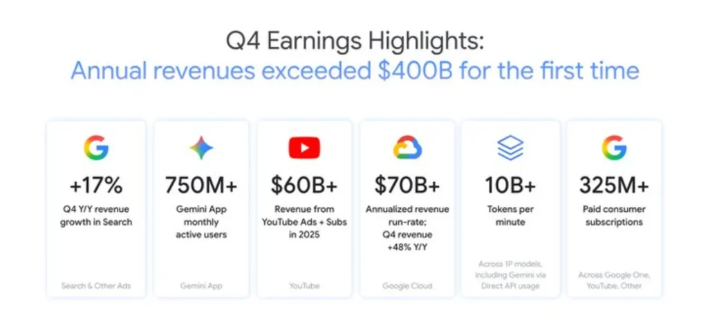 Google تحقق نتائج قوية في Q4/FY’25 مع أداء قياسي في الإيرادات، وهذه أبرز النقاط: