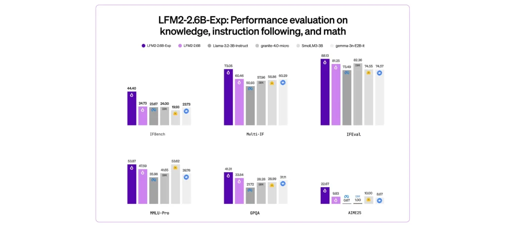 أعلنت شركة Liquid AI عن إطلاق النموذج التجريبي LFM2-2.6B-Exp، وهو نموذج ذكاء اصطناعي صغير الحجم مخصص للعمل على الأجهزة، مع أداء لافت في الرياضيات واتباع التعليمات.