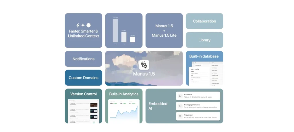 أعلنت شركة Manus عن إصدار Manus 1.5، وهو أحدث وأقوى إصدار من منصتها للوكيل الذكي، ويتميز بسرعة إنجاز أعلى بأربع مرات، وذكاء مُحسَّن، بالإضافة إلى قدرات تطوير ويب متكاملة من الواجهة الأمامية حتى الخلفية.