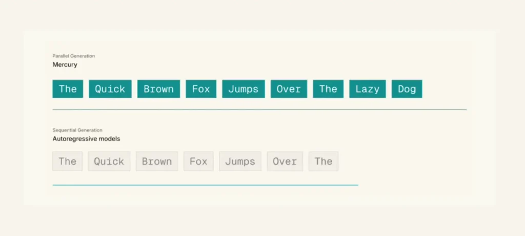 يمثل Mercury 2 تحولاً معمارياً في طريقة توليد النصوص، حيث يتخلى عن فك الترميز التسلسلي التقليدي (autoregressive) الذي ينتج الرموز واحداً تلو الآخر، ويعتمد بدلاً من ذلك على التوليد المتوازي عبر “تحسين تدريجي” ينتج عدة رموز في الوقت نفسه.