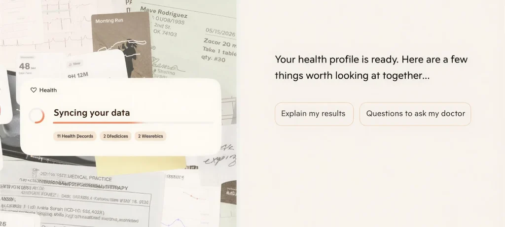 - تكامل واسع مع الأجهزة والسجلات: الاتصال بأكثر من 50 جهازًا قابلًا للارتداء و50 ألف مستشفى أمريكي لتجميع السجلات الطبية ونتائج المختبرات.