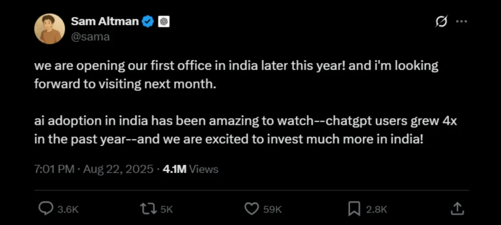 OpenAI تفتتح أول مكتب لها في الهند بعد إطلاق خطة ChatGPT GO