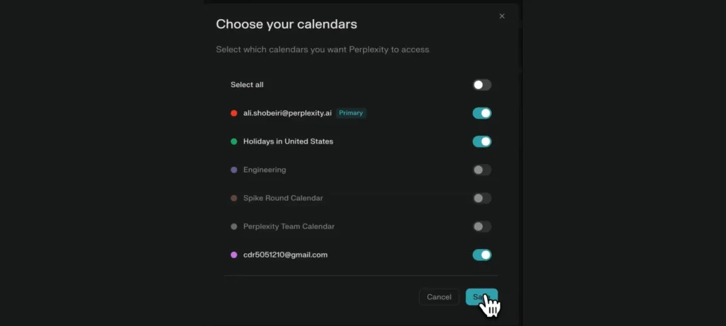 أصبح مساعد البريد في Perplexity قادرًا على العمل عبر عدة تقاويم في آن واحد (شخصي، عملي، عائلي)، سواء عبر Gmail أو Outlook، ليساعدك في تنظيم جدولك بكفاءة وسهولة.