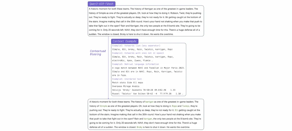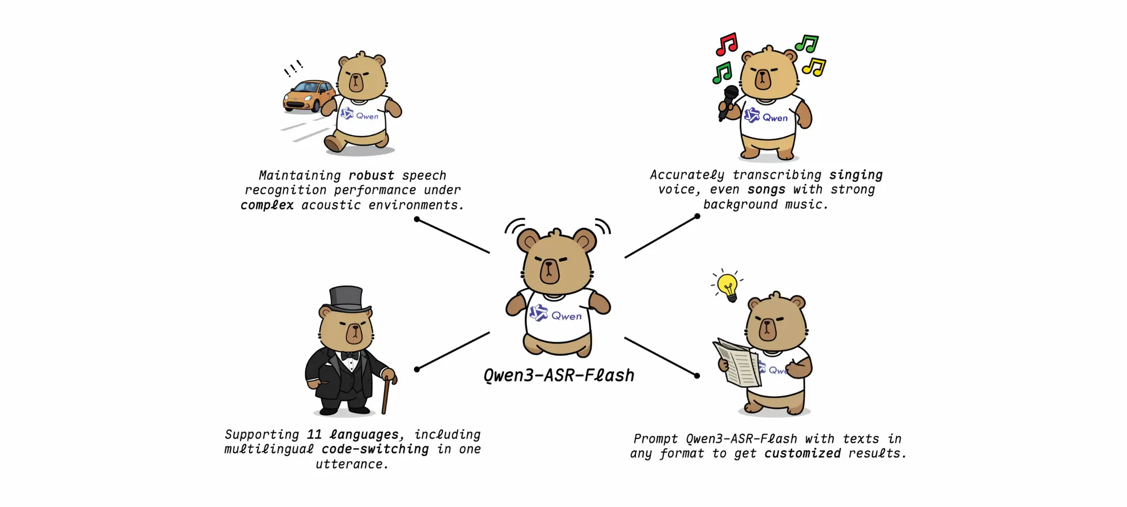يدعم نموذج Qwen3-ASR التعرف على الأصوات بدقة عالية، مع ميزة التعامل مع الغناء، اللهجات المختلفة، والنصوص الموجهة.