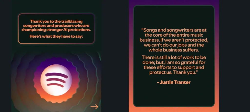 Spotify أوضحت أن رؤيتها ترتكز على تمكين الفنانين من اختيار كيفية استخدام الذكاء الاصطناعي، مع الحفاظ على حقوقهم وهويتهم الإبداعية. وتشمل الأهداف القادمة: