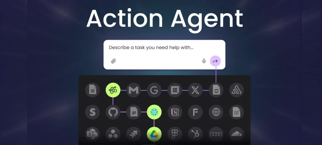 يُعد Action Agent نقلة نوعية في مجال الذكاء الاصطناعي المؤسسي، حيث يتجاوز حدود التفاعل الحواري المعتاد ليبدأ تنفيذ المهام الفعلية بدلًا من إعطاء التعليمات فقط: