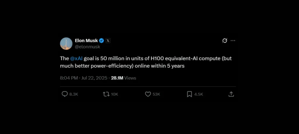 xAI تطمح لتوفير قدرة حوسبة تعادل 50 مليون وحدة H100 بحلول 2030